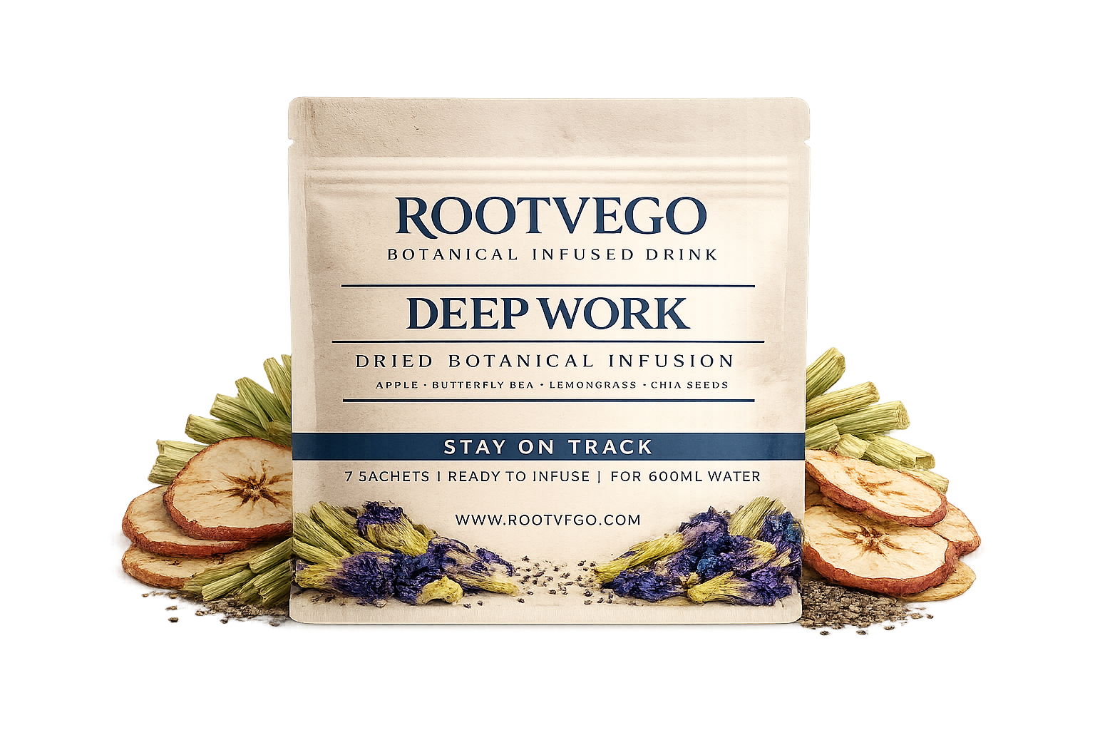 Rootvego adalah botanical hydration system untuk membantu kamu menjaga fokus, mengambil jeda, dan menurunkan ritme — tanpa stimulasi berlebih.